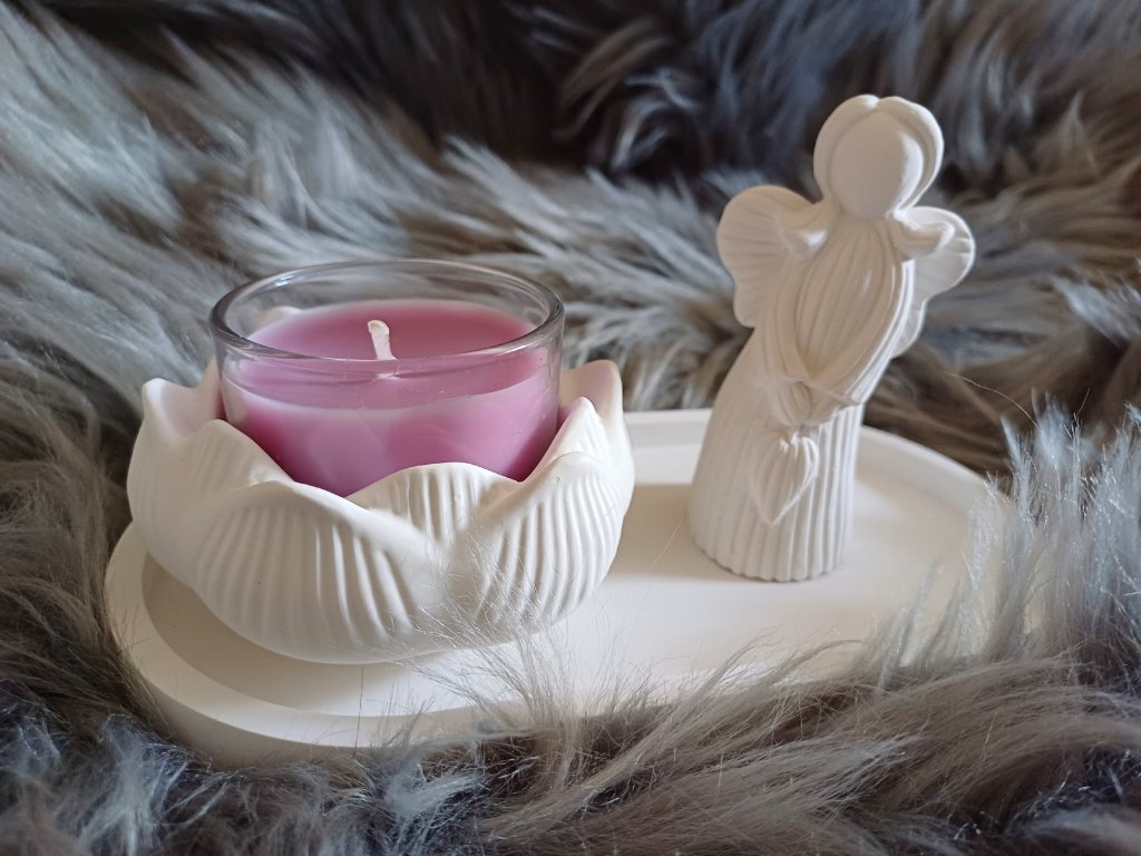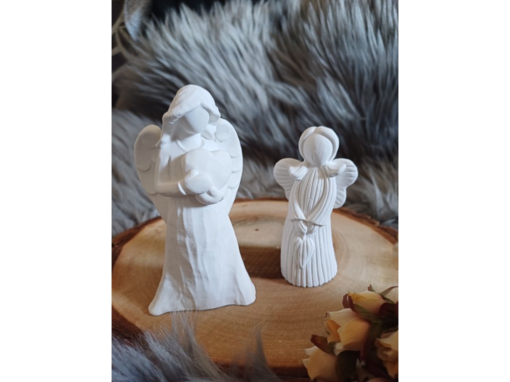 Dekorativní anděl z keraflotu s jemným pruhovaným vzorem na šatech. Minimalistické zpracování bez detailů v obličeji mu dodává klidný a elegantní výraz. Vhodný jako milý dárek nebo součást sváteční výzdoby.