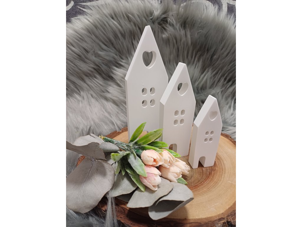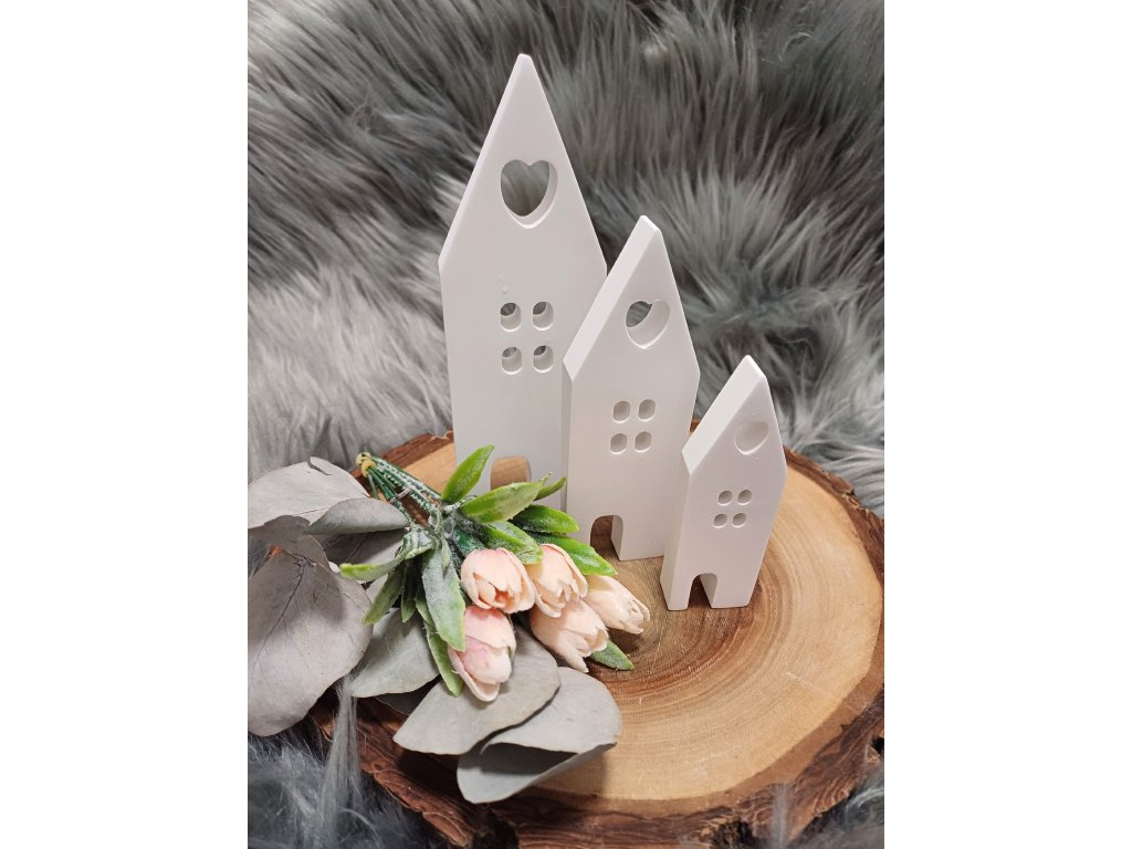 Jednoduché domečky s jemnými tvary, které do interiéru vnesou klid a harmonii. Díky své čisté podobě se hodí jako nenápadná dekorace nebo součást sezónního aranžmá. Můžete je postavit samostatně nebo zkombinovat s dalšími doplňky podle nálady a ročního období.