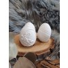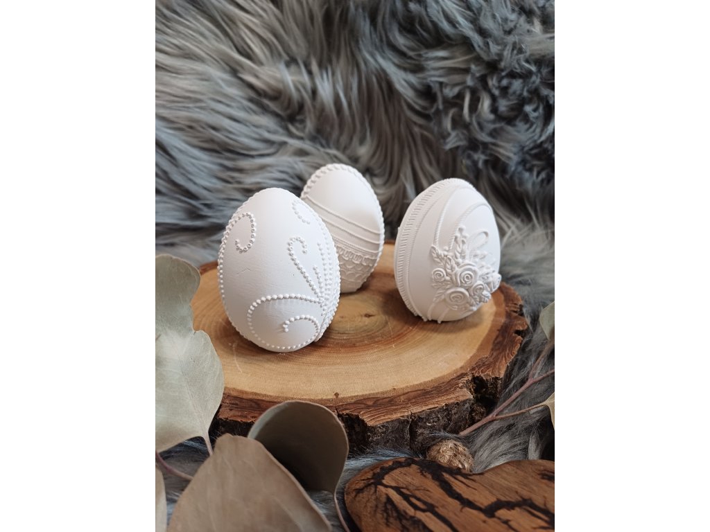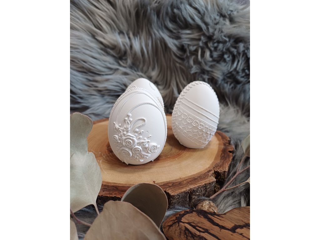 Dekorativní kraslice z keraflotu s jemnými detaily, dostupná ve třech variantách – s krajkou, plastickými růžičkami nebo perličkovým vzorem. Precizní provedení a čistý design dodávají vajíčku sofistikovaný vzhled. Skvělé jako samostatná dekorace nebo součást velikonočního aranžmá.