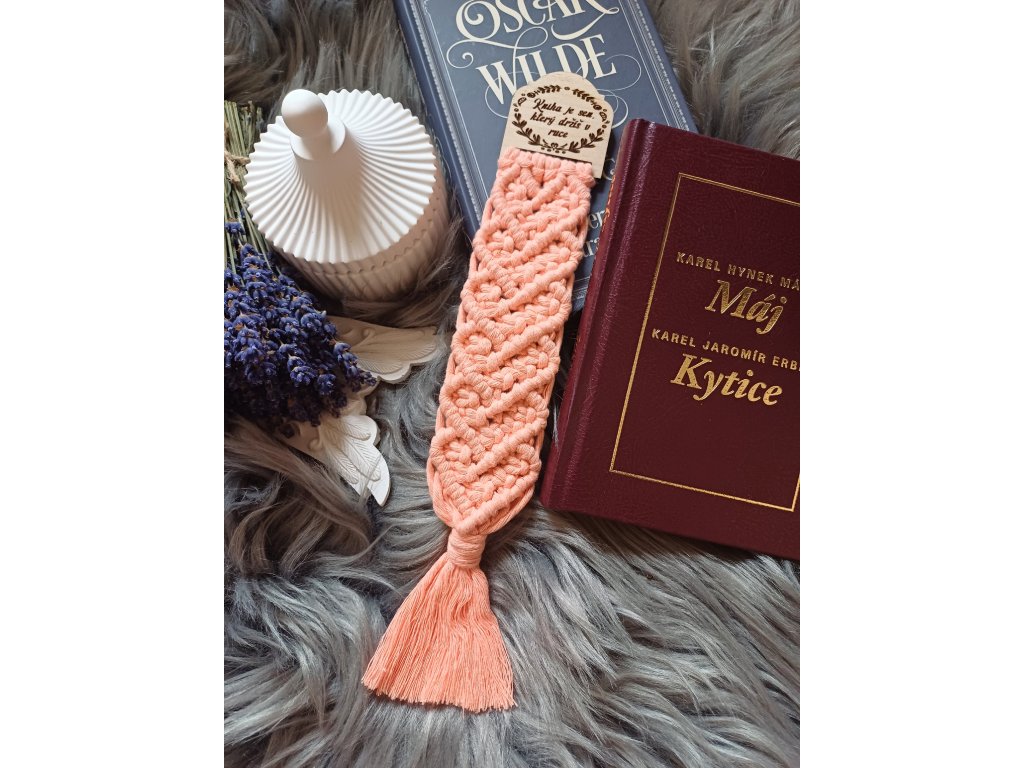 Elegantní macrame záložka vyrobená ručně technikou macramé z kvalitní 100% bavlněné šňůry. Díky srdíčkovému vzoru a zakončení střapcem působí jedinečně a dodá čtení ještě větší kouzlo.