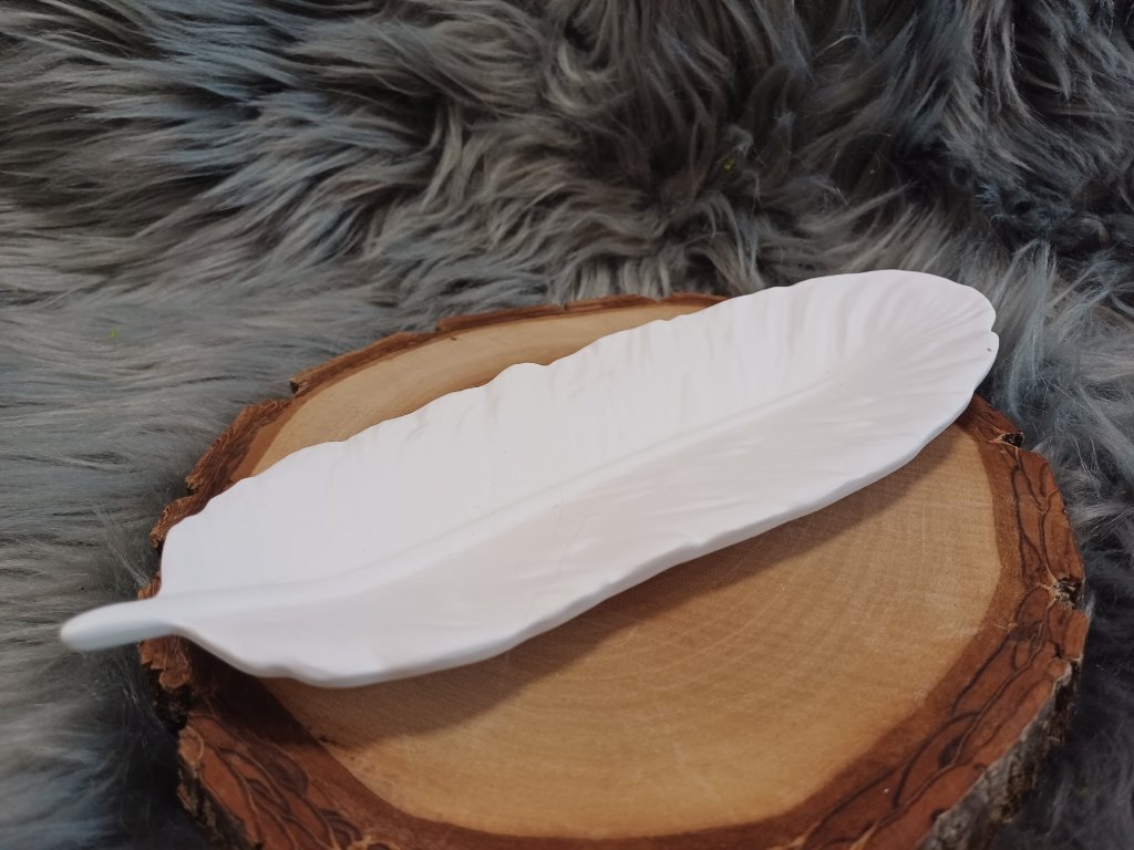 Podtácek ve tvaru peříčka přináší do interiéru jemnost a lehkost inspirovanou přírodou. Detailní textura dodává na autentičnosti a činí z něj nejen praktický doplněk, ale i vkusný dekorační prvek. Vhodný například na odložení drobných šperků.