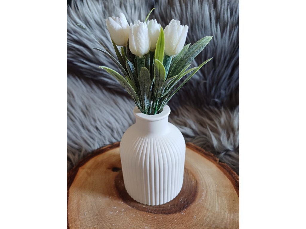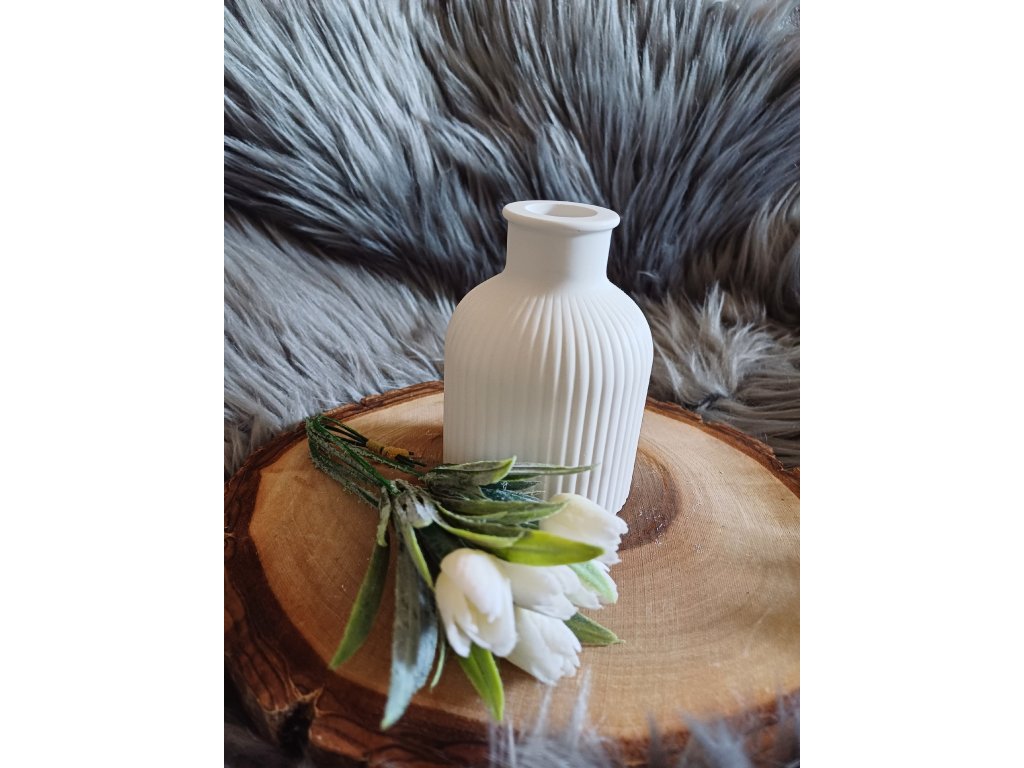 Dekorativní vázička vyrobená z keraflotu s jemným pruhovaným povrchem. Elegantní matný vzhled a čistý tvar dodávají vázičce moderní a zároveň nadčasový charakter. Skvěle se hodí pro umělé či sušené květiny.