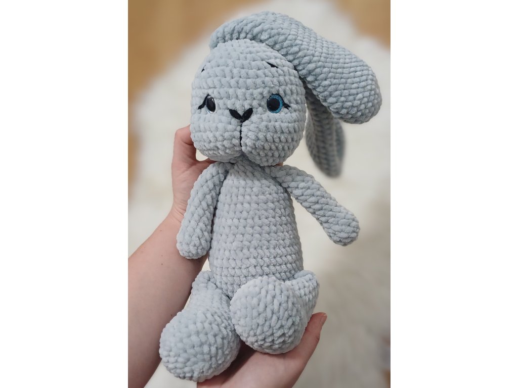 Tento roztomilý zajoch je ručně háčkovaný z jemné žinylkové příze, díky které je krásně hebký a příjemný na dotek. Ideální jako dekorace do dětského pokojíčku.